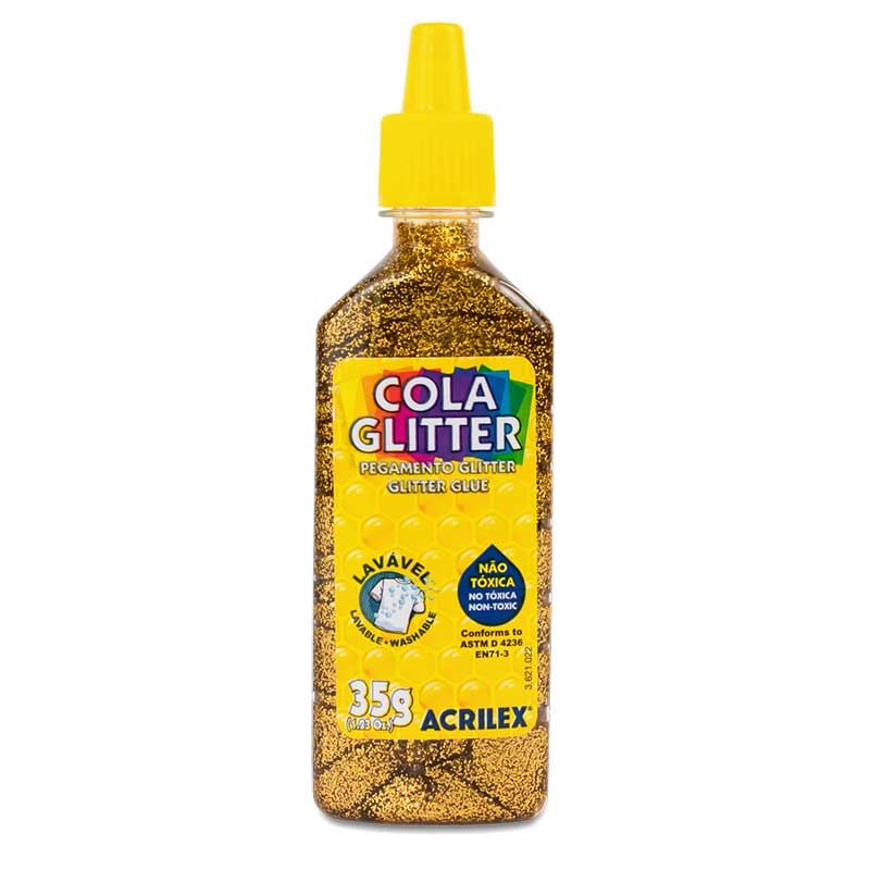 Foi desenvolvida para trabalhos escolares e artesanais. Ideal para atividades de desenvolvimento artístico. Possui um exclusivo bico aplicador que facilita a pintura, podendo ser usada também com esponja ou pincel, para fazer colagens, decorar e pintar sobre papel, papel cartão e cartolina. A Cola Glitter Acrilex não é tóxica e possui brilho intenso.