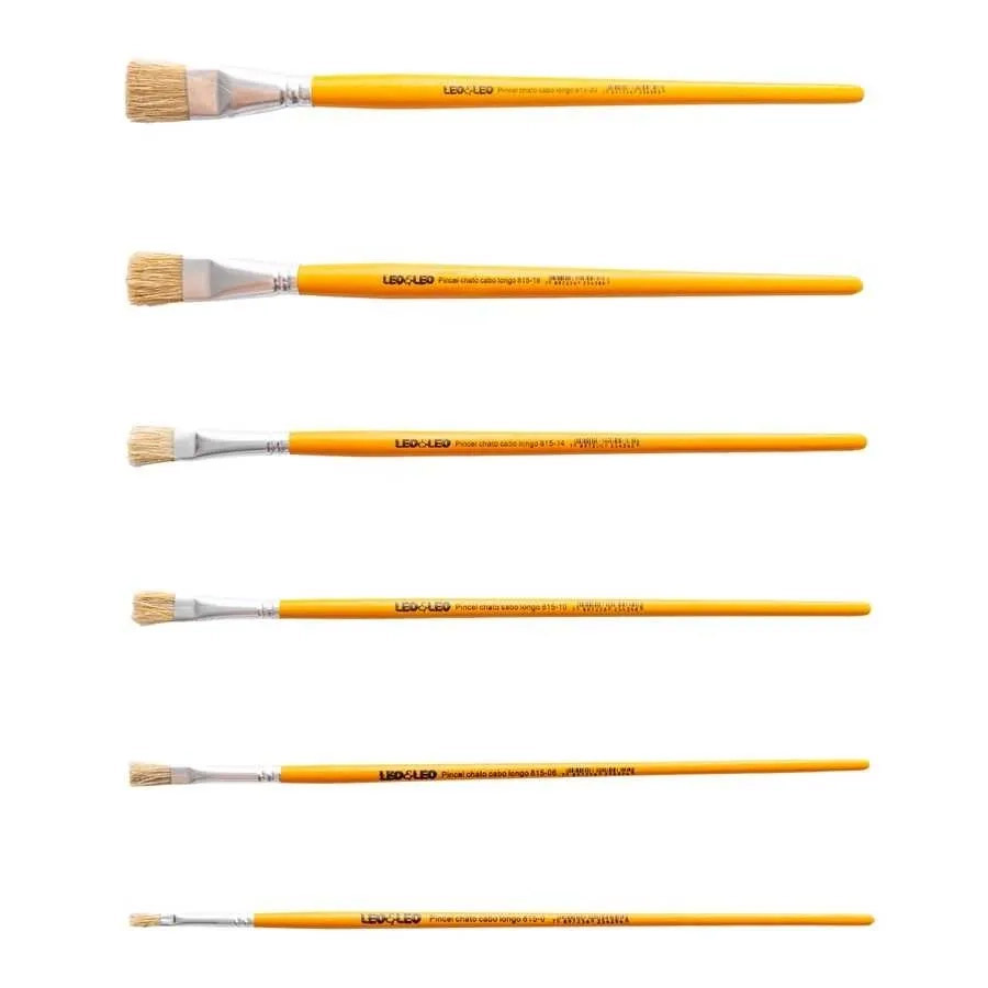 Pincel Escolar Chato Cabo Longo Leo & Leo é ideal para uso escolar e artesanato. Possui cabo longo.
