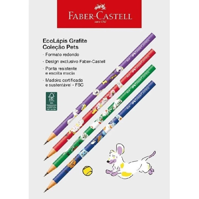 Ecolapis Preto N2 Pets Redondo (Unidade) Faber-Castell Com design moderno e estampas colecionáveis os lápis da Coleção Pets vão deixar a hora de escrever muito mais divertida, são perfeitos para uso comum e atividades escolares.